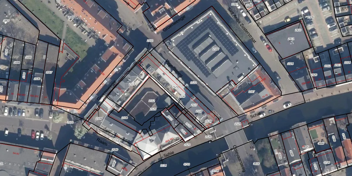 Vijgensteeg 5 is gelegen op kadastraal perceel SDM01A2121. Deze kadastrale aanduiding is uniek en wordt gebruikt door het Kadaster om eigendomsrechten en andere zakelijke rechten vast te leggen. Het perceel maakt onderdeel uit van de kadastrale gemeente Schiedam.