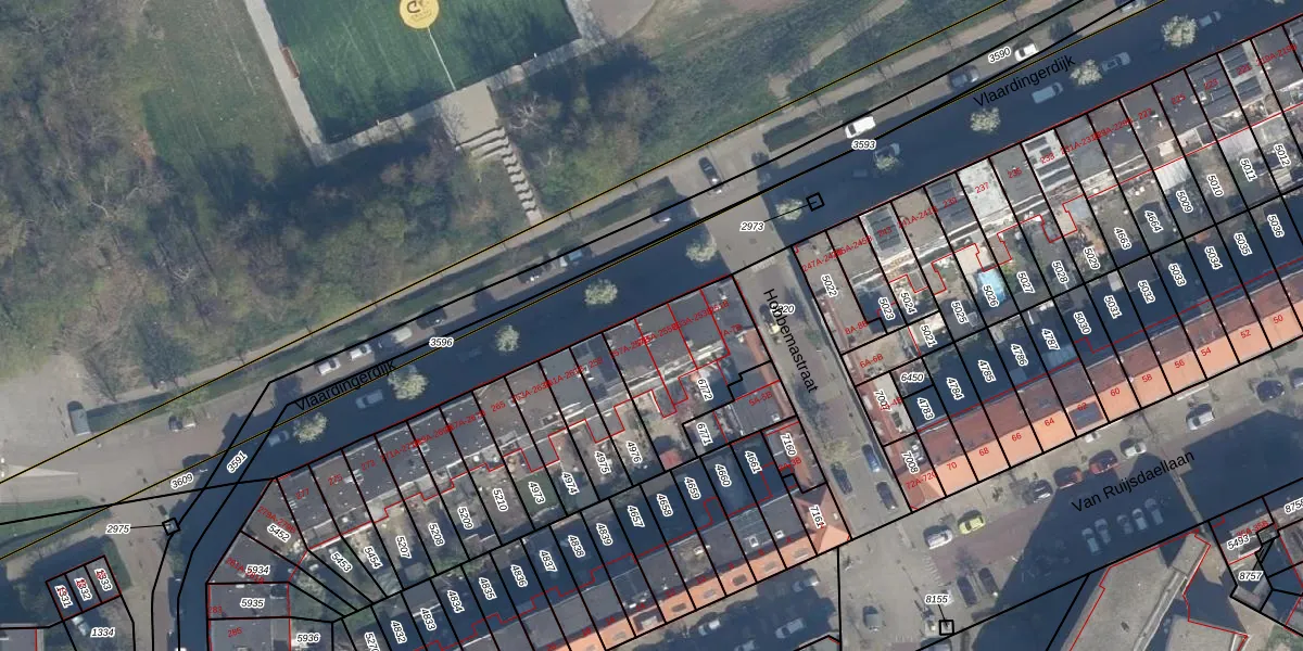 Het perceel waarop Vlaardingerdijk 255-A staat heeft een oppervlakte van 410 m². Dit is een groot perceel. De perceeloppervlakte wordt geregistreerd door het Kadaster. Gedetailleerde informatie over de maten van dit perceel kunt u vinden in het rapport Kadastrale kaart met maatvoering van Vlaardingerdijk 255-A.