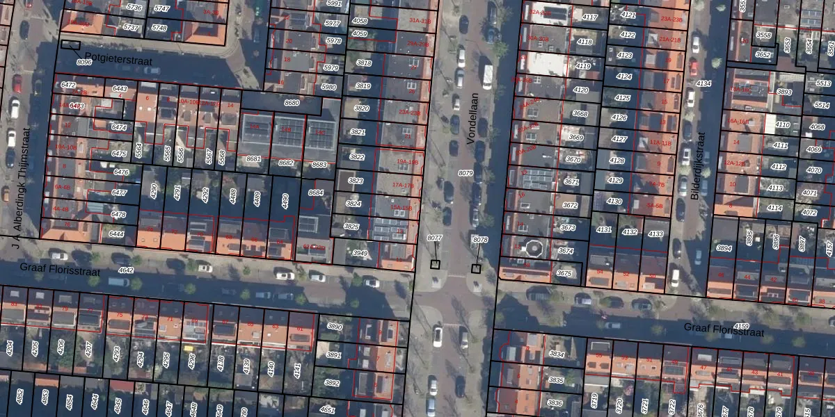 Het perceel waarop Vondellaan 15-A staat heeft een oppervlakte van 114 m². Dit is een middelgroot perceel. De perceeloppervlakte wordt geregistreerd door het Kadaster. Gedetailleerde informatie over de maten van dit perceel kunt u vinden in het rapport Kadastrale kaart met maatvoering van Vondellaan 15-A.