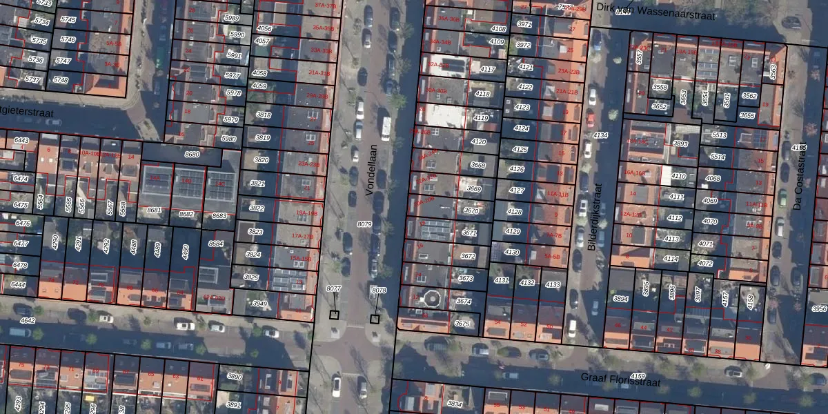 Het perceel waarop Vondellaan 20-B staat heeft een oppervlakte van 115 m². Dit is een middelgroot perceel. De perceeloppervlakte wordt geregistreerd door het Kadaster. Gedetailleerde informatie over de maten van dit perceel kunt u vinden in het rapport Kadastrale kaart met maatvoering van Vondellaan 20-B.