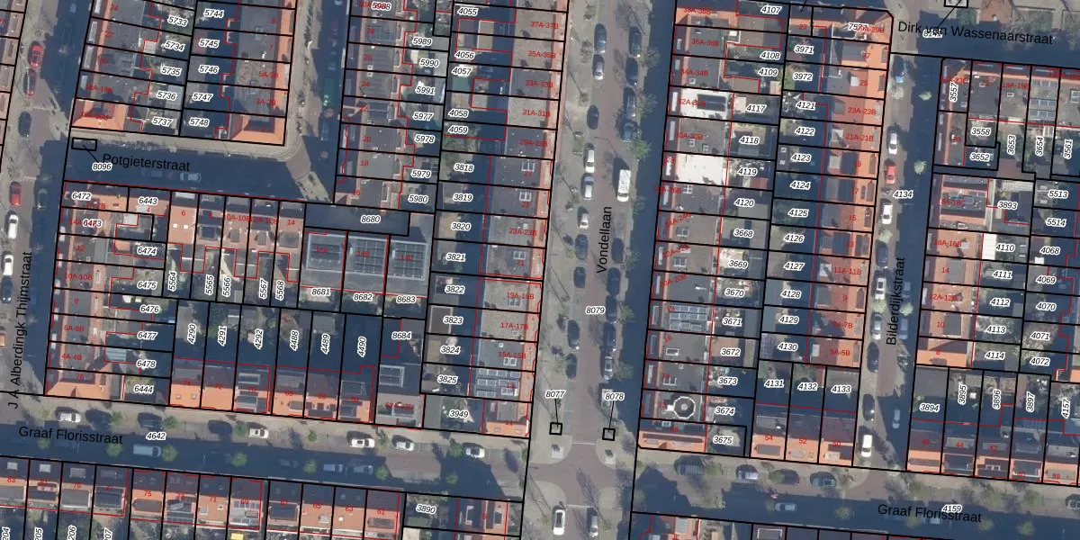 Het perceel waarop Vondellaan 21 staat heeft een oppervlakte van 126 m². Dit is een middelgroot perceel. De perceeloppervlakte wordt geregistreerd door het Kadaster. Gedetailleerde informatie over de maten van dit perceel kunt u vinden in het rapport Kadastrale kaart met maatvoering van Vondellaan 21.