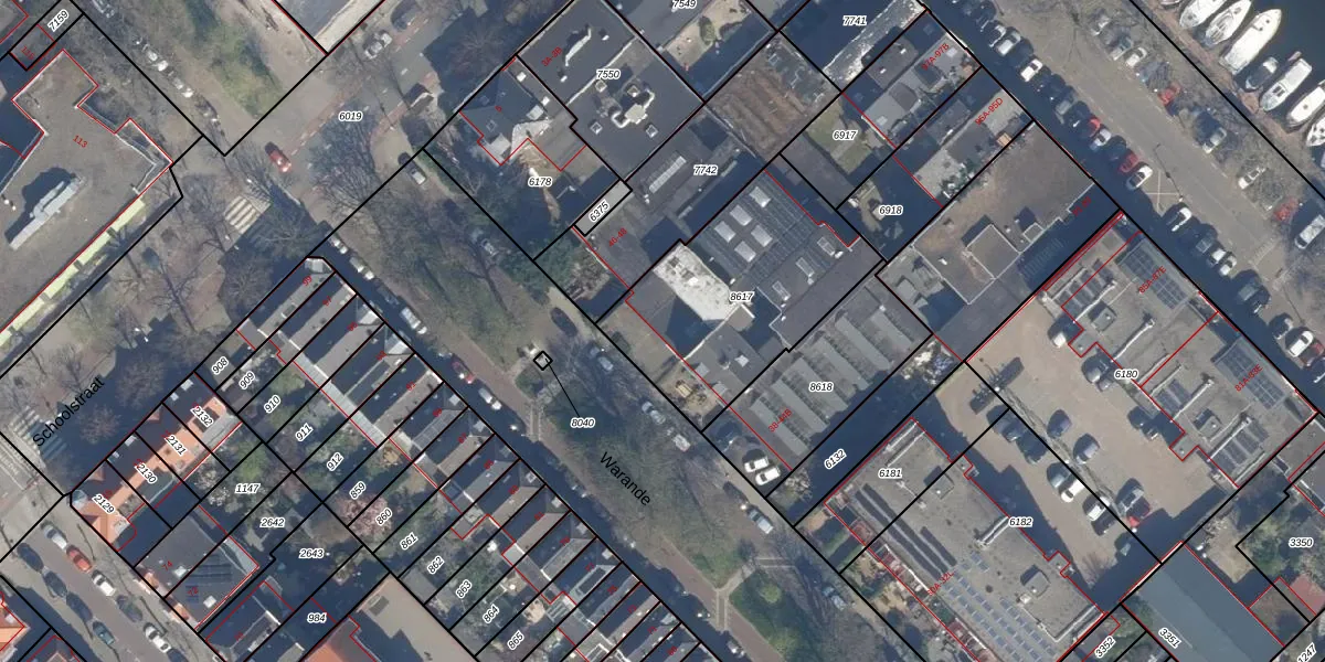 Warande 44-B is gelegen op kadastraal perceel SDM01M8617. Deze kadastrale aanduiding is uniek en wordt gebruikt door het Kadaster om eigendomsrechten en andere zakelijke rechten vast te leggen. Het perceel maakt onderdeel uit van de kadastrale gemeente Schiedam.