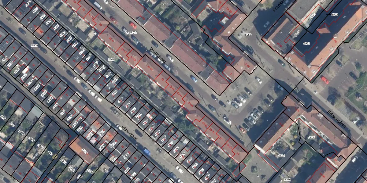 Het perceel waarop Wattstraat 43 staat heeft een oppervlakte van 2639 m². Dit is een zeer groot perceel. De perceeloppervlakte wordt geregistreerd door het Kadaster. Gedetailleerde informatie over de maten van dit perceel kunt u vinden in het rapport Kadastrale kaart met maatvoering van Wattstraat 43.