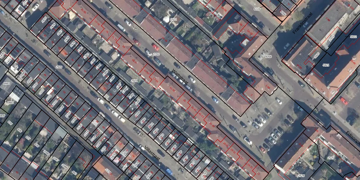 Het perceel waarop Wattstraat 51 staat heeft een oppervlakte van 2639 m². Dit is een zeer groot perceel. De perceeloppervlakte wordt geregistreerd door het Kadaster. Gedetailleerde informatie over de maten van dit perceel kunt u vinden in het rapport Kadastrale kaart met maatvoering van Wattstraat 51.