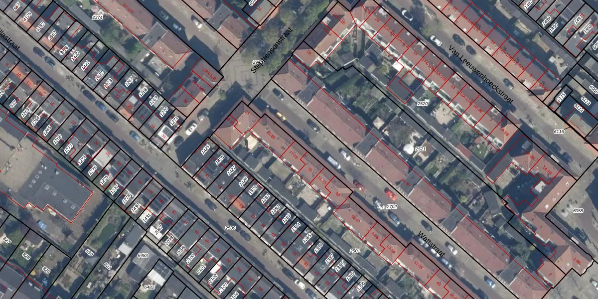 Het perceel waarop Wattstraat 79 staat heeft een oppervlakte van 2639 m². Dit is een zeer groot perceel. De perceeloppervlakte wordt geregistreerd door het Kadaster. Gedetailleerde informatie over de maten van dit perceel kunt u vinden in het rapport Kadastrale kaart met maatvoering van Wattstraat 79.