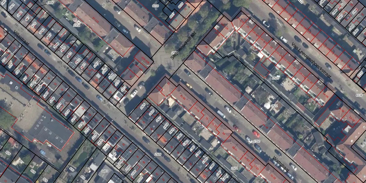 Het perceel waarop Wattstraat 85 staat heeft een oppervlakte van 2639 m². Dit is een zeer groot perceel. De perceeloppervlakte wordt geregistreerd door het Kadaster. Gedetailleerde informatie over de maten van dit perceel kunt u vinden in het rapport Kadastrale kaart met maatvoering van Wattstraat 85.