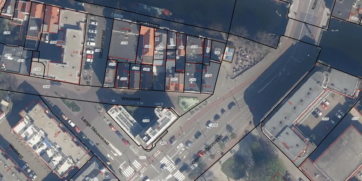 Het perceel waarop Westvest 4-C staat heeft een oppervlakte van 168 m². Dit is een middelgroot perceel. De perceeloppervlakte wordt geregistreerd door het Kadaster. Gedetailleerde informatie over de maten van dit perceel kunt u vinden in het rapport Kadastrale kaart met maatvoering van Westvest 4-C.