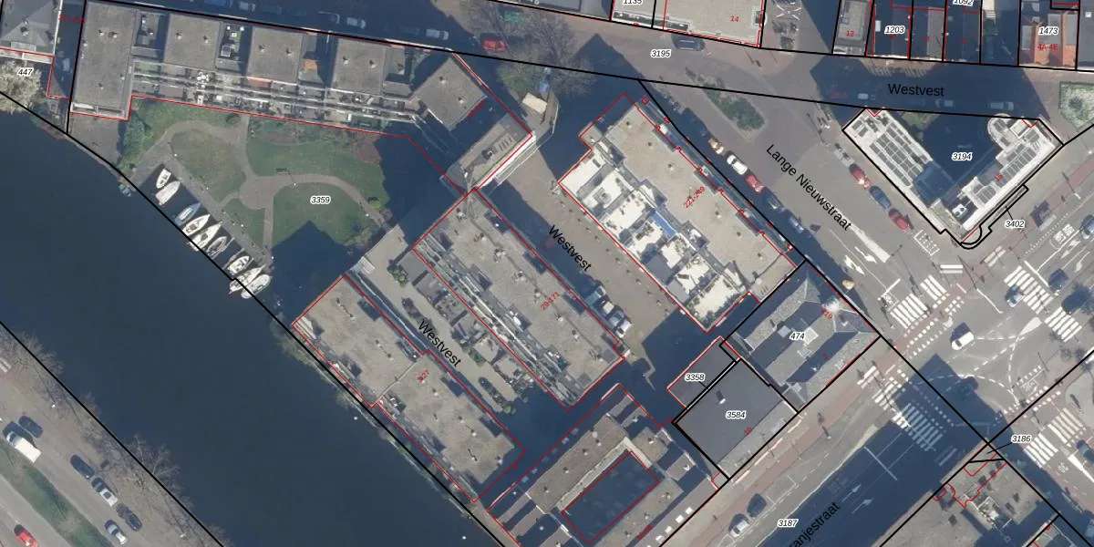 Het perceel waarop Westvest 41 staat heeft een oppervlakte van 8043 m². Dit is een zeer groot perceel. De perceeloppervlakte wordt geregistreerd door het Kadaster. Gedetailleerde informatie over de maten van dit perceel kunt u vinden in het rapport Kadastrale kaart met maatvoering van Westvest 41.