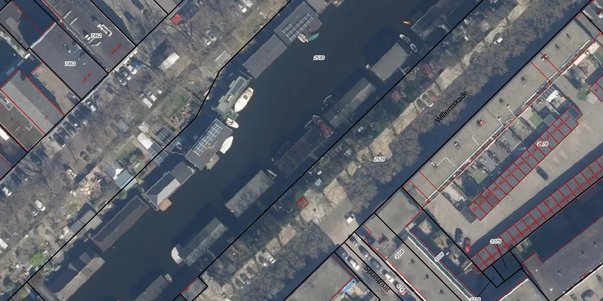 Het perceel waarop Willemskade 14 staat heeft een oppervlakte van 1,0 ha. Dit is een zeer groot perceel. De perceeloppervlakte wordt geregistreerd door het Kadaster. Gedetailleerde informatie over de maten van dit perceel kunt u vinden in het rapport Kadastrale kaart met maatvoering van Willemskade 14.