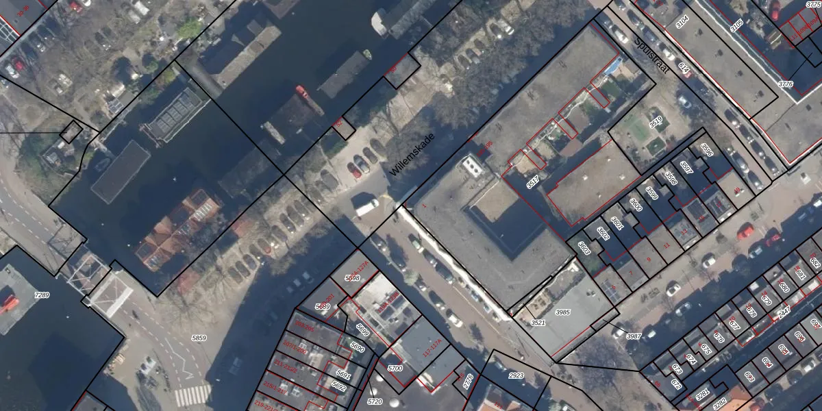 Het perceel waarop Willemskade 191 staat heeft een oppervlakte van 2135 m². Dit is een zeer groot perceel. De perceeloppervlakte wordt geregistreerd door het Kadaster. Gedetailleerde informatie over de maten van dit perceel kunt u vinden in het rapport Kadastrale kaart met maatvoering van Willemskade 191.
