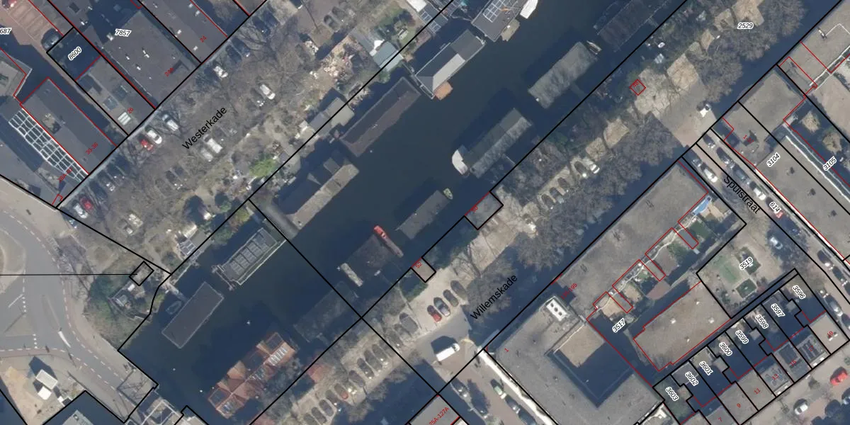 Het perceel waarop Willemskade 20 staat heeft een oppervlakte van 1,0 ha. Dit is een zeer groot perceel. De perceeloppervlakte wordt geregistreerd door het Kadaster. Gedetailleerde informatie over de maten van dit perceel kunt u vinden in het rapport Kadastrale kaart met maatvoering van Willemskade 20.