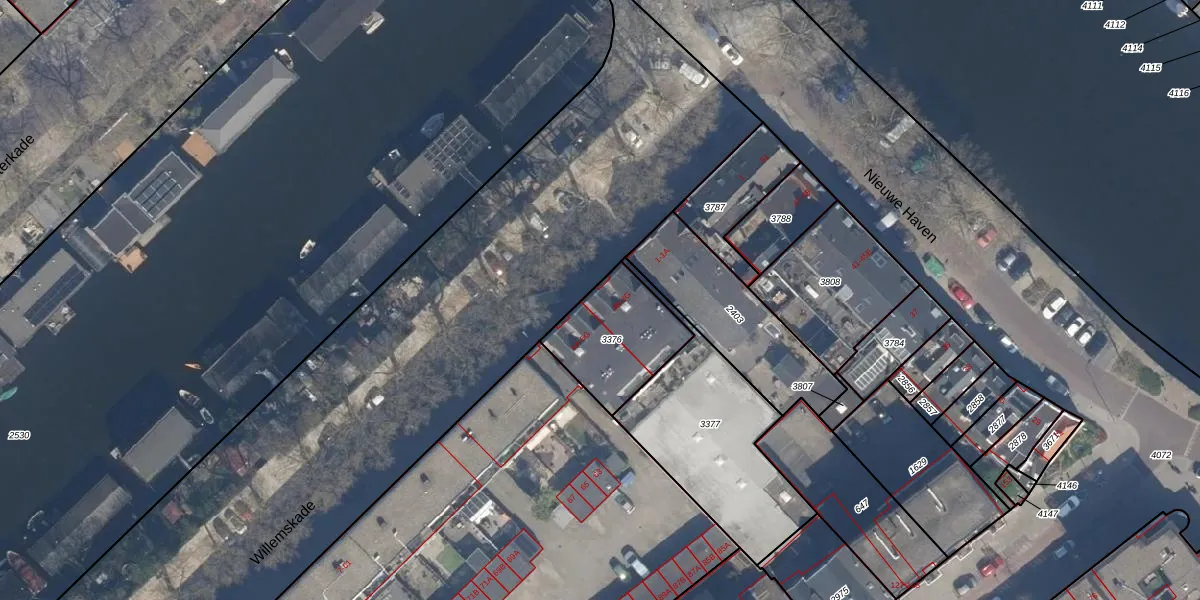 Het perceel waarop Willemskade 3-E staat heeft een oppervlakte van 335 m². Dit is een groot perceel. De perceeloppervlakte wordt geregistreerd door het Kadaster. Gedetailleerde informatie over de maten van dit perceel kunt u vinden in het rapport Kadastrale kaart met maatvoering van Willemskade 3-E.