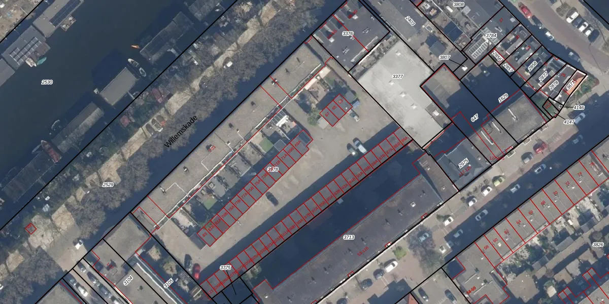 Het perceel waarop Willemskade 69-A staat heeft een oppervlakte van 3675 m². Dit is een zeer groot perceel. De perceeloppervlakte wordt geregistreerd door het Kadaster. Gedetailleerde informatie over de maten van dit perceel kunt u vinden in het rapport Kadastrale kaart met maatvoering van Willemskade 69-A.