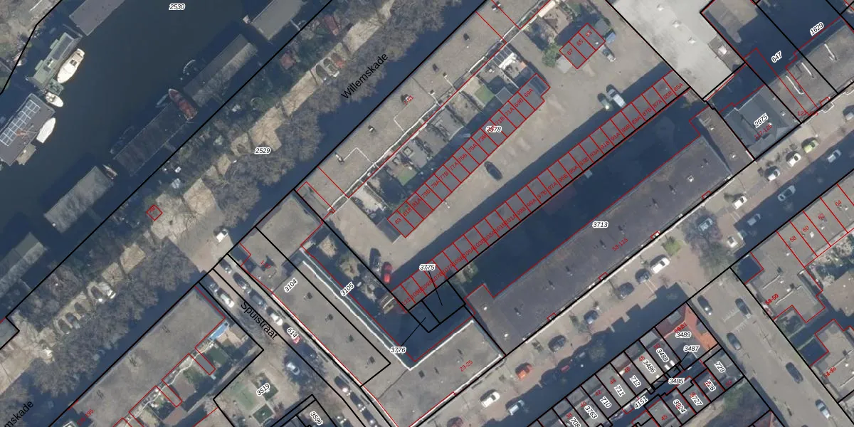 Het perceel waarop Willemskade 81-A staat heeft een oppervlakte van 3675 m². Dit is een zeer groot perceel. De perceeloppervlakte wordt geregistreerd door het Kadaster. Gedetailleerde informatie over de maten van dit perceel kunt u vinden in het rapport Kadastrale kaart met maatvoering van Willemskade 81-A.