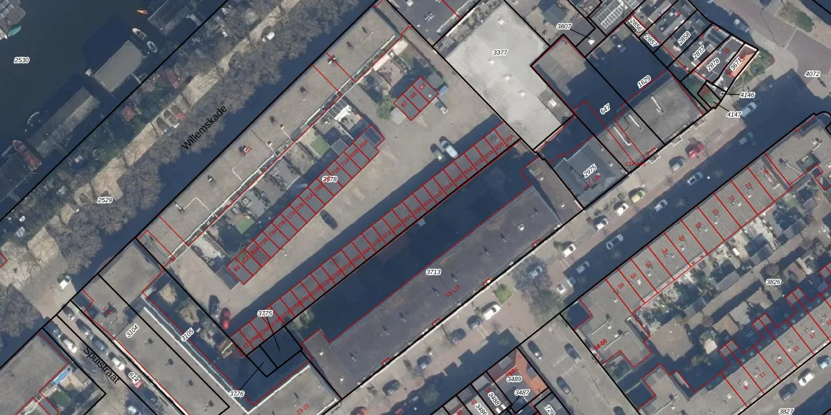 Het perceel waarop Willemskade 93-B staat heeft een oppervlakte van 3675 m². Dit is een zeer groot perceel. De perceeloppervlakte wordt geregistreerd door het Kadaster. Gedetailleerde informatie over de maten van dit perceel kunt u vinden in het rapport Kadastrale kaart met maatvoering van Willemskade 93-B.