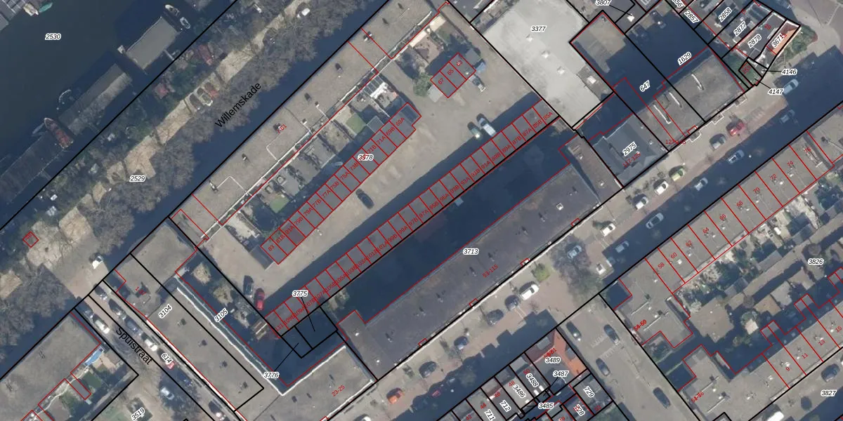 Het perceel waarop Willemskade 97-A staat heeft een oppervlakte van 3675 m². Dit is een zeer groot perceel. De perceeloppervlakte wordt geregistreerd door het Kadaster. Gedetailleerde informatie over de maten van dit perceel kunt u vinden in het rapport Kadastrale kaart met maatvoering van Willemskade 97-A.