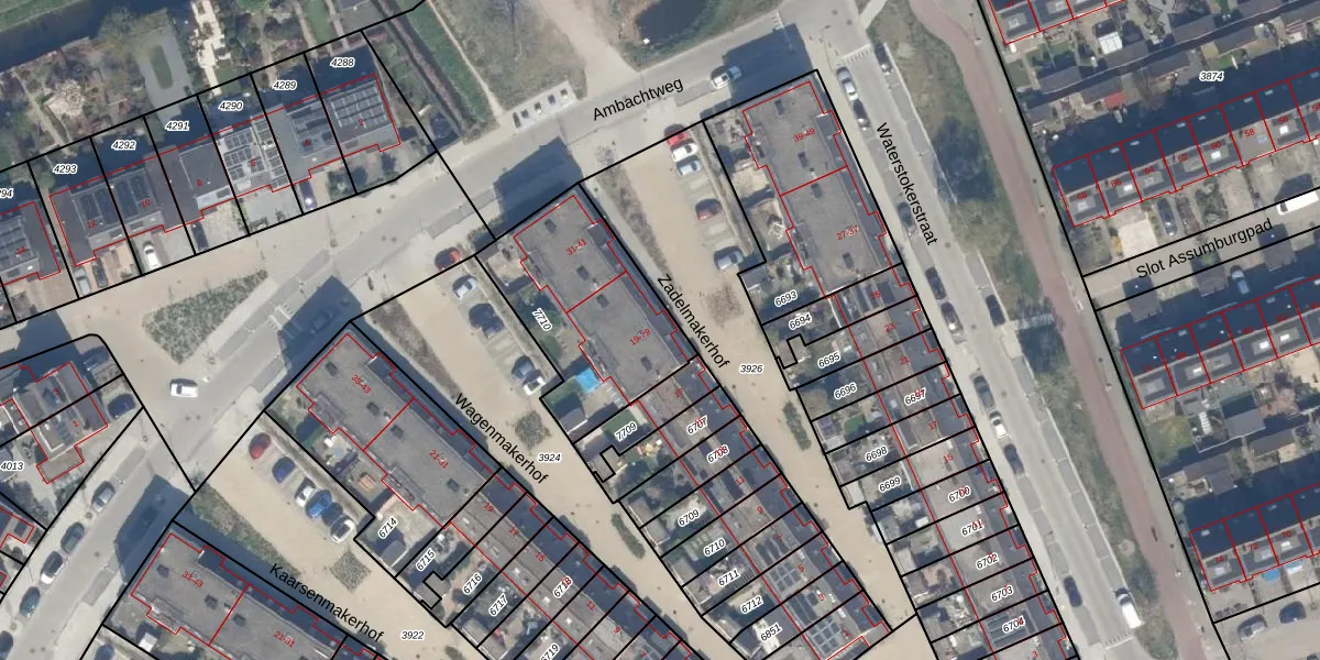 Het perceel waarop Zadelmakerhof 27 staat heeft een oppervlakte van 643 m². Dit is een groot perceel. De perceeloppervlakte wordt geregistreerd door het Kadaster. Gedetailleerde informatie over de maten van dit perceel kunt u vinden in het rapport Kadastrale kaart met maatvoering van Zadelmakerhof 27.