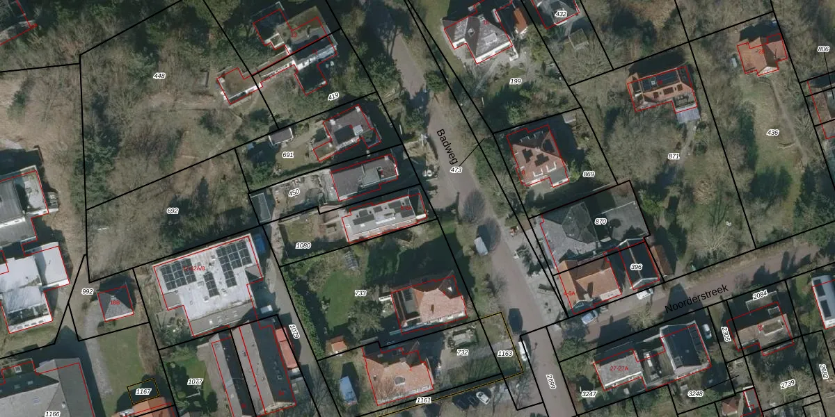 Het perceel waarop Badweg 5 staat heeft een oppervlakte van 382 m². Dit is een groot perceel. De perceeloppervlakte wordt geregistreerd door het Kadaster. Gedetailleerde informatie over de maten van dit perceel kunt u vinden in het rapport Kadastrale kaart met maatvoering van Badweg 5.