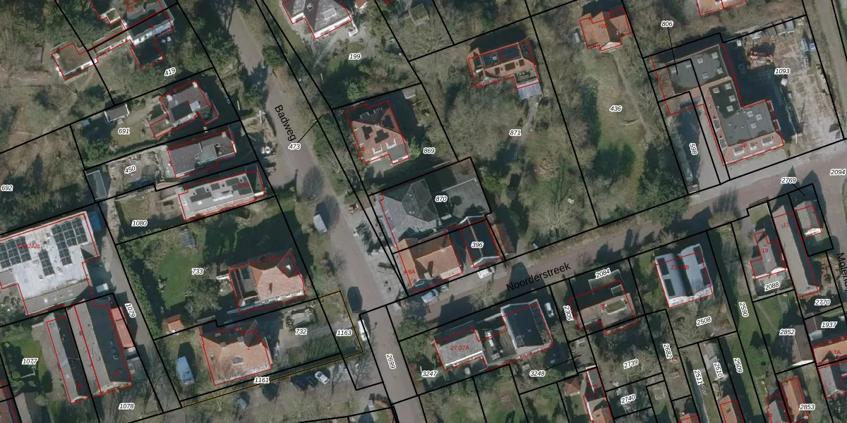 Het perceel waarop Badweg 6-B staat heeft een oppervlakte van 387 m². Dit is een groot perceel. De perceeloppervlakte wordt geregistreerd door het Kadaster. Gedetailleerde informatie over de maten van dit perceel kunt u vinden in het rapport Kadastrale kaart met maatvoering van Badweg 6-B.