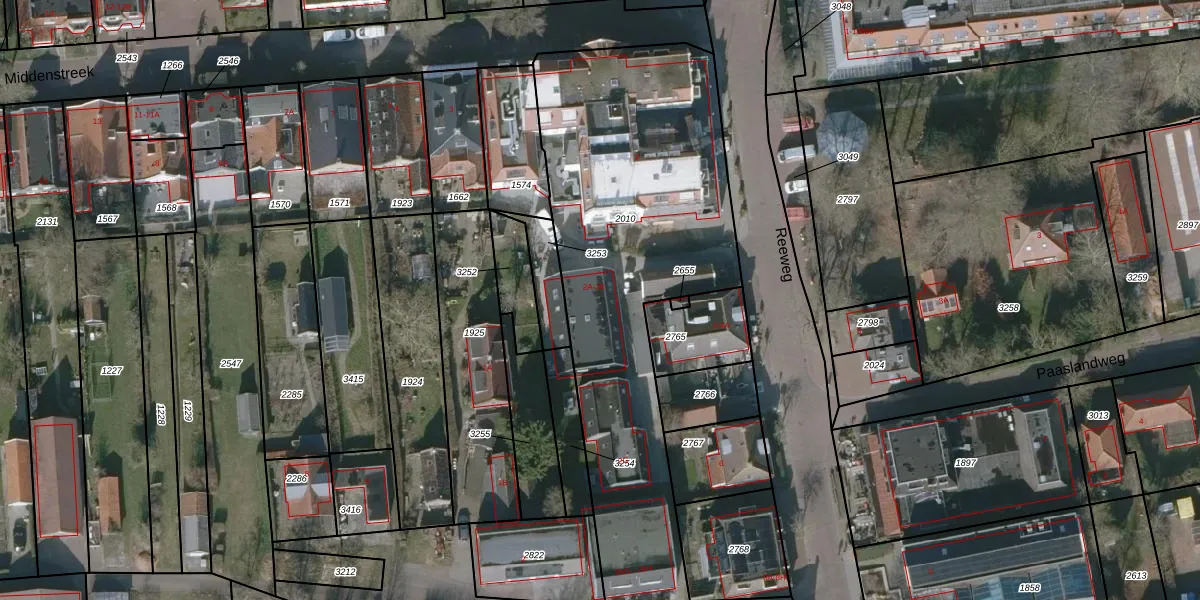 Het perceel waarop Reeweg 2-C staat heeft een oppervlakte van 1938 m². Dit is een zeer groot perceel. De perceeloppervlakte wordt geregistreerd door het Kadaster. Gedetailleerde informatie over de maten van dit perceel kunt u vinden in het rapport Kadastrale kaart met maatvoering van Reeweg 2-C.