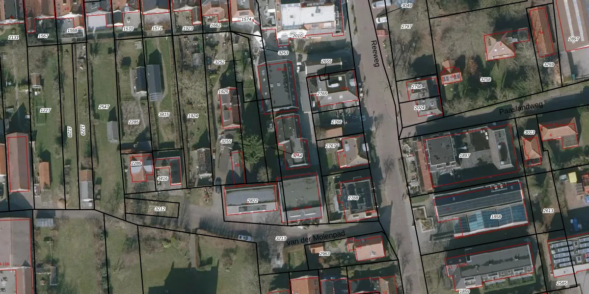 Het perceel waarop Reeweg 2-G staat heeft een oppervlakte van 1938 m². Dit is een zeer groot perceel. De perceeloppervlakte wordt geregistreerd door het Kadaster. Gedetailleerde informatie over de maten van dit perceel kunt u vinden in het rapport Kadastrale kaart met maatvoering van Reeweg 2-G.