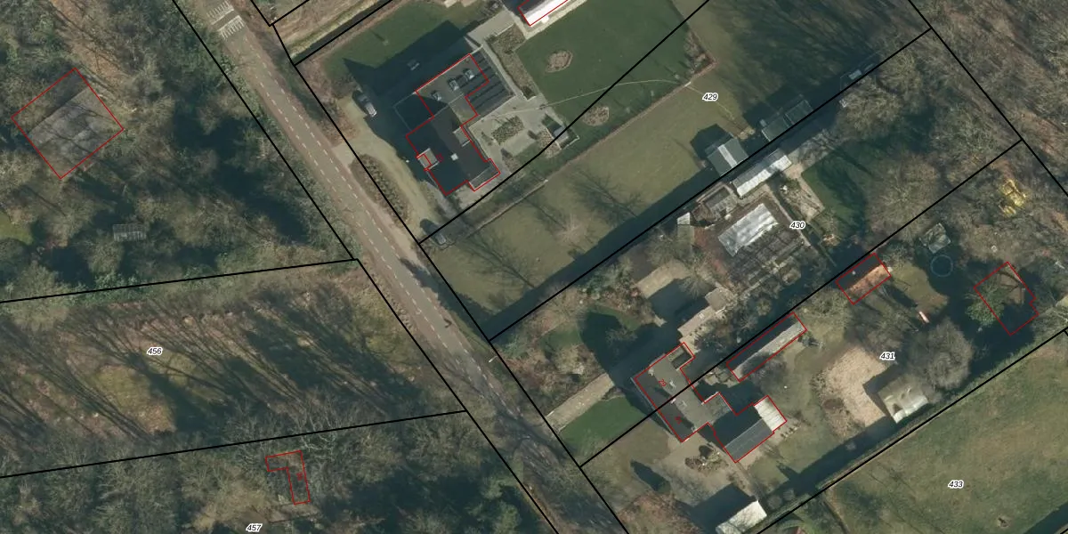 Het adres is gelegen op perceel 429 in de sectie Q en de kadastrale gemeente Rucphen. De kadastrale aanduiding is aldus RPN00-Q-429. Het perceel is kleiner dan gemiddeld in Rucphen. Het perceel is 2670 m² groot, terwijl het gemiddelde ligt op 4094,7 m². De grootste perceeloppervlakte in de kadastrale gemeente is 43,3 ha. De kleinste oppervlakte bedraagt 0 m². Er zijn geen andere adressen aanwezig op het perceel. De huidige grenzen van het perceel zijn digitaal in de Basisregistratie Kadaster (BRK) geregistreerd op 03-09-2009.