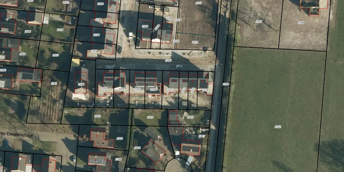 Het adres is gelegen op perceel 2211 in de sectie I en de kadastrale gemeente Rucphen. De kadastrale aanduiding is aldus RPN00-I-2211. De gemiddelde perceelgrootte in Rucphen is 4095,22 m². Dit perceel is kleiner: de perceeloppervlakte bedraagt 216 m². Het kleinste perceel in de kadastrale gemeente is 0 m² groot. De grootste perceeloppervlakte is 43,3 ha. Er zijn geen andere adressen aanwezig op het perceel. De huidige grenzen van het perceel zijn digitaal in de Basisregistratie Kadaster (BRK) geregistreerd op 04-11-2025.