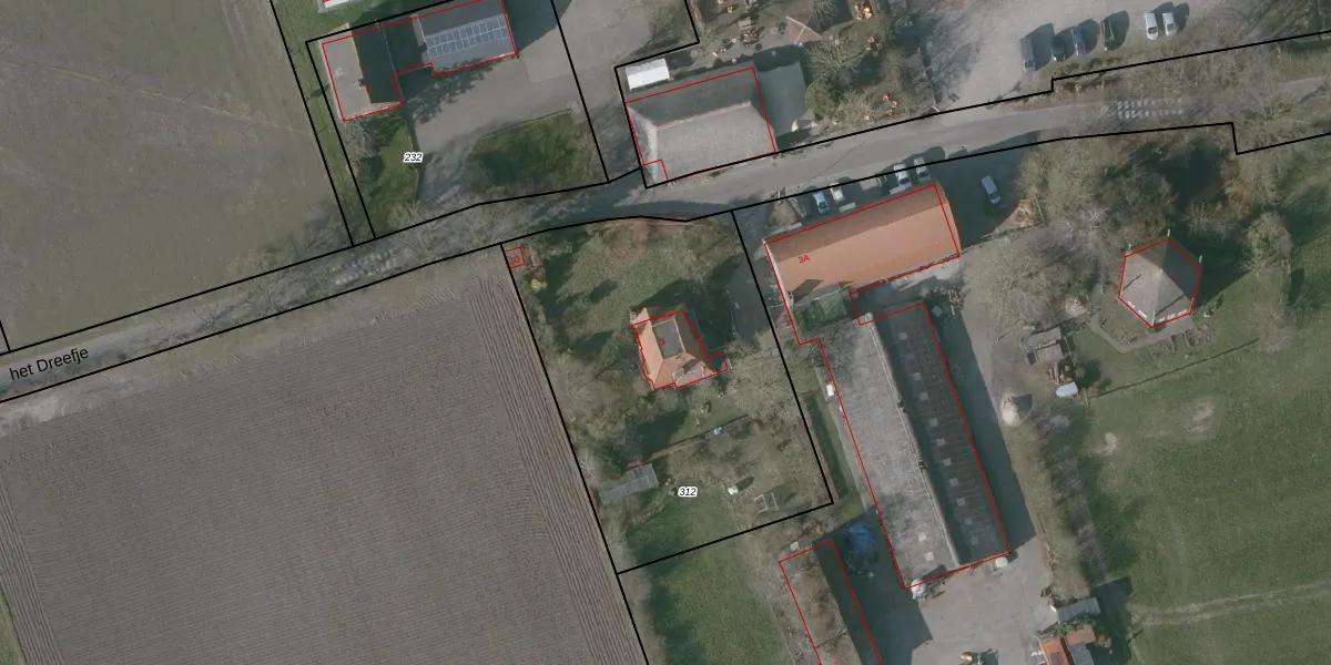 het Dreefje 3 is gelegen op kadastraal perceel RPN00O312. Deze kadastrale aanduiding is uniek en wordt gebruikt door het Kadaster om eigendomsrechten en andere zakelijke rechten vast te leggen. Het perceel maakt onderdeel uit van de kadastrale gemeente Rucphen.