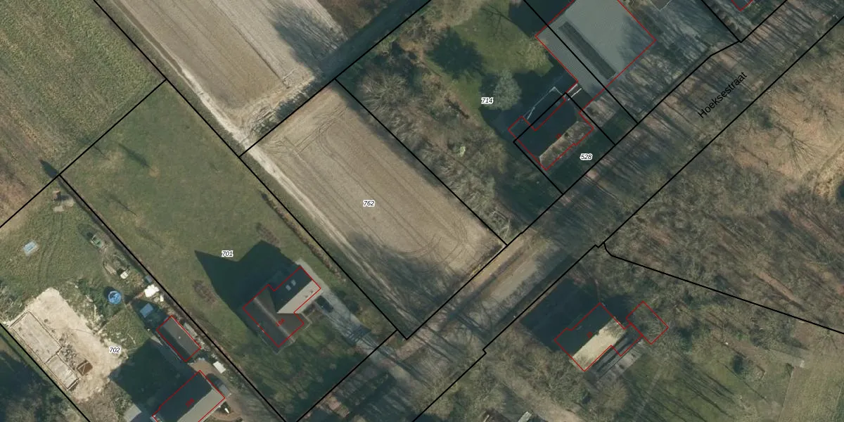 Het adres is gelegen op perceel 762 in de sectie Q en de kadastrale gemeente Rucphen. De kadastrale aanduiding is aldus RPN00-Q-762. Het perceel is kleiner dan gemiddeld in Rucphen. Het perceel is 1795 m² groot, terwijl het gemiddelde ligt op 4095,22 m². De grootste perceeloppervlakte in de kadastrale gemeente is 43,3 ha. De kleinste oppervlakte bedraagt 0 m². Dit is het enige adres dat aanwezig is op het perceel. De huidige grenzen van het perceel zijn digitaal in de Basisregistratie Kadaster (BRK) geregistreerd op 10-09-2020.