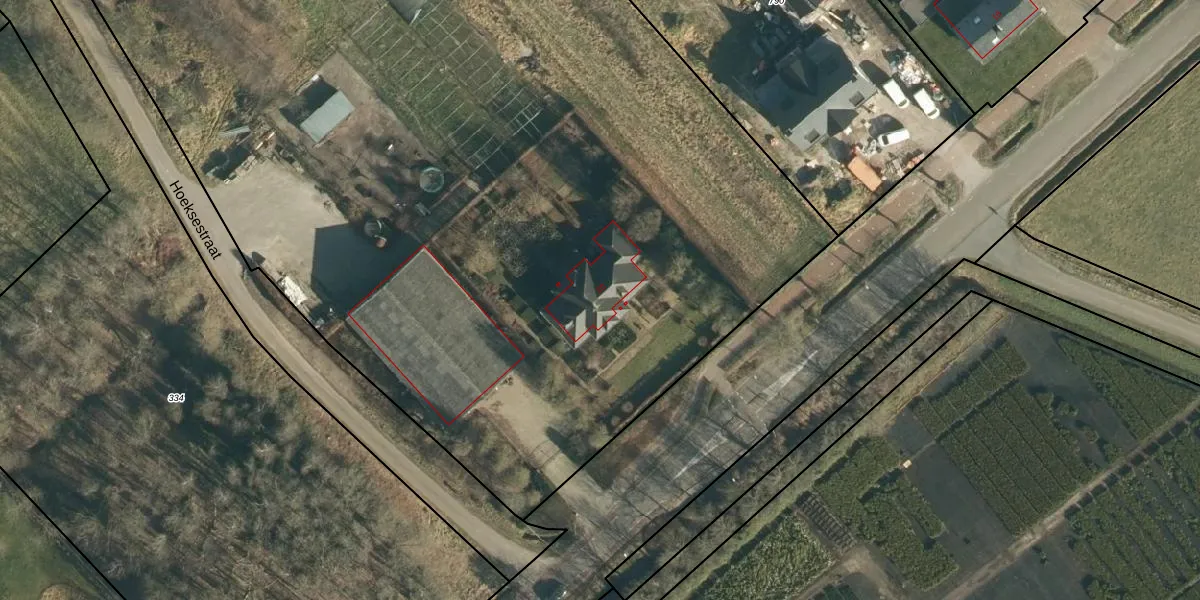 Het perceel waarop Hoeksestraat 20 staat heeft een oppervlakte van 1,6 ha. Dit is een zeer groot perceel. De perceeloppervlakte wordt geregistreerd door het Kadaster. Gedetailleerde informatie over de maten van dit perceel kunt u vinden in het rapport Kadastrale kaart met maatvoering van Hoeksestraat 20.