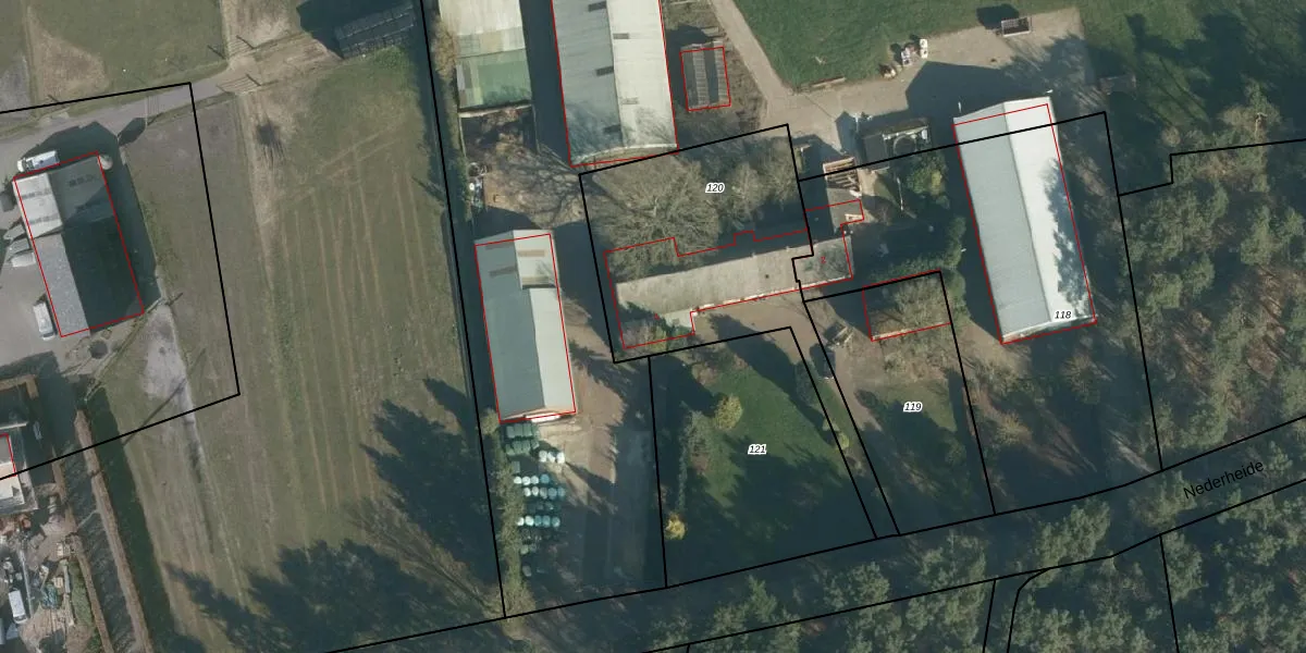 Het perceel waarop Nederheide 4 staat heeft een oppervlakte van 1082 m². Dit is een zeer groot perceel. De perceeloppervlakte wordt geregistreerd door het Kadaster. Gedetailleerde informatie over de maten van dit perceel kunt u vinden in het rapport Kadastrale kaart met maatvoering van Nederheide 4.