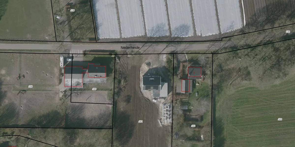 Het perceel waarop Nederheide 5 staat heeft een oppervlakte van 3385 m². Dit is een zeer groot perceel. De perceeloppervlakte wordt geregistreerd door het Kadaster. Gedetailleerde informatie over de maten van dit perceel kunt u vinden in het rapport Kadastrale kaart met maatvoering van Nederheide 5.