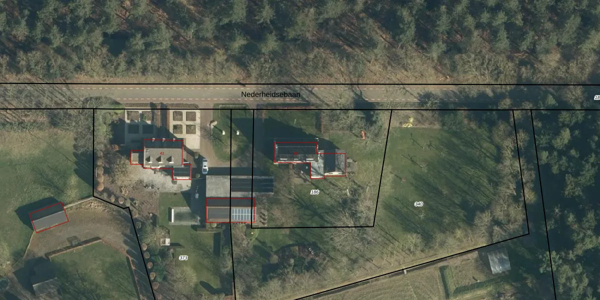 Het perceel waarop Nederheidsebaan 39 staat heeft een oppervlakte van 1690 m². Dit is een zeer groot perceel. De perceeloppervlakte wordt geregistreerd door het Kadaster. Gedetailleerde informatie over de maten van dit perceel kunt u vinden in het rapport Kadastrale kaart met maatvoering van Nederheidsebaan 39.