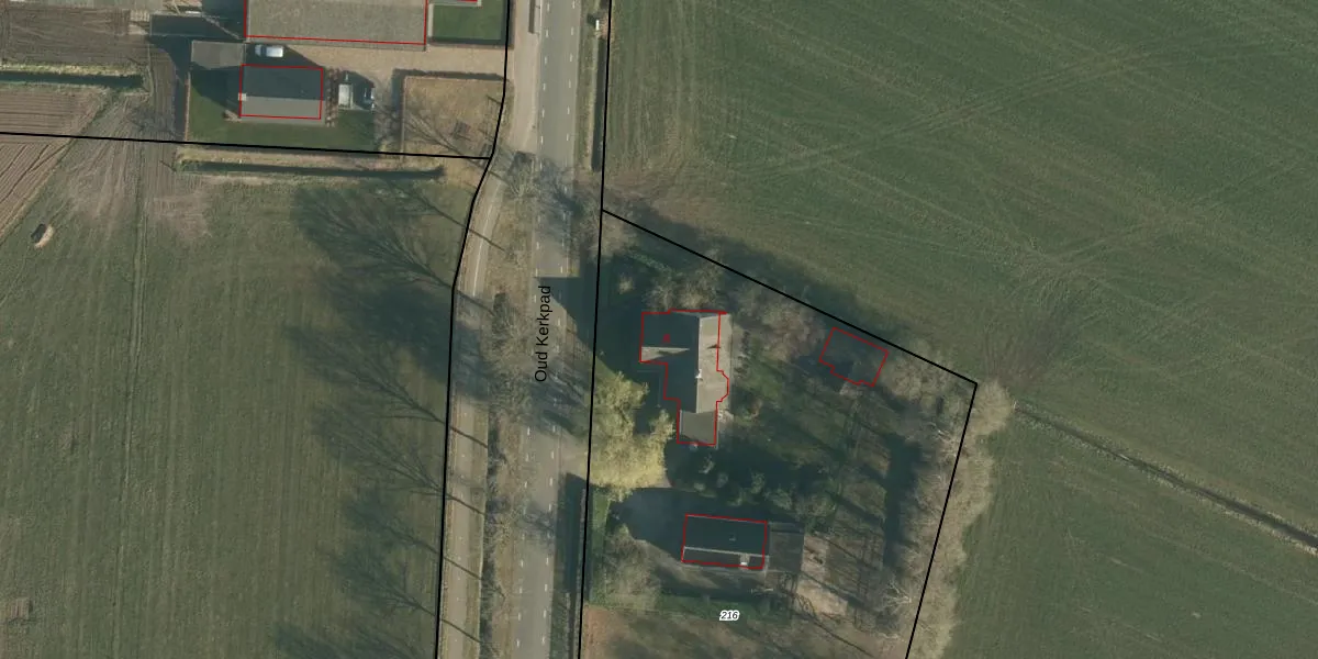 Oud Kerkpad 36 is gelegen op kadastraal perceel RPN00Q216. Deze kadastrale aanduiding is uniek en wordt gebruikt door het Kadaster om eigendomsrechten en andere zakelijke rechten vast te leggen. Het perceel maakt onderdeel uit van de kadastrale gemeente Rucphen.