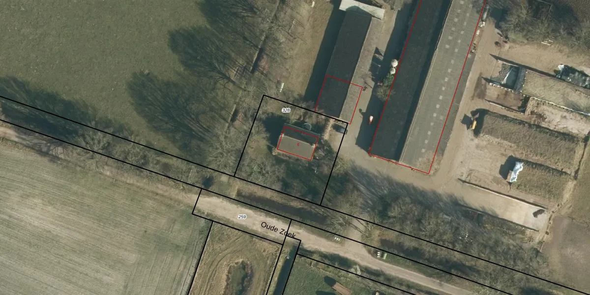 Oude Zoek 6 is gelegen op kadastraal perceel RPN00R328. Deze kadastrale aanduiding is uniek en wordt gebruikt door het Kadaster om eigendomsrechten en andere zakelijke rechten vast te leggen. Het perceel maakt onderdeel uit van de kadastrale gemeente Rucphen.