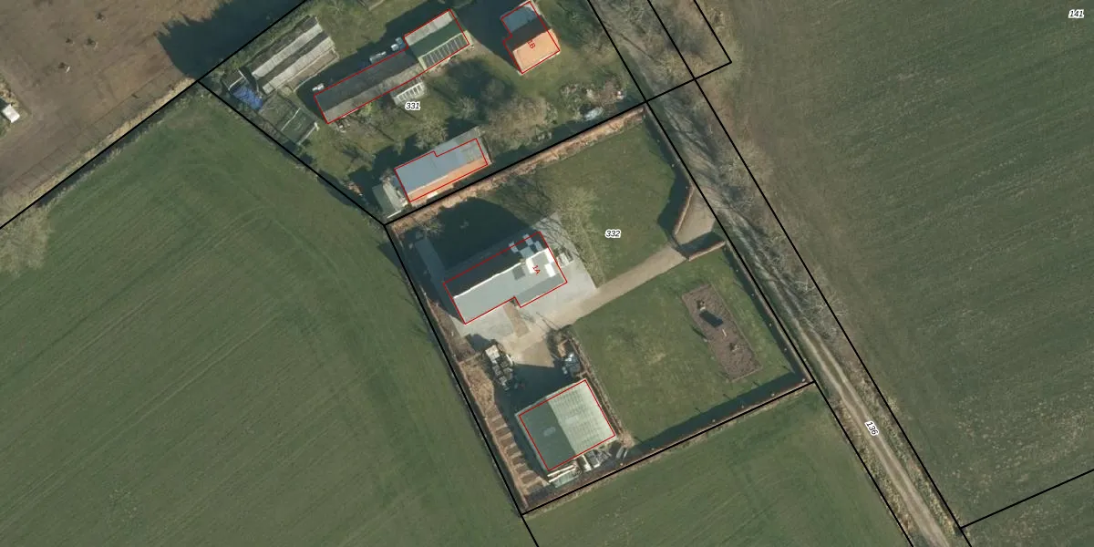 Het adres is gelegen op perceel 332 in de sectie R en de kadastrale gemeente Rucphen. De kadastrale aanduiding is aldus RPN00-R-332. Het perceel is 3304 m² groot. Dat is kleiner dan de gemiddelde perceeloppervlakte in Rucphen, dat op 4095,22 m² ligt. Het grootste perceel in de kadastrale gemeente is 43,3 ha. Het kleinste perceel heeft een oppervlakte van 0 m². Dit is het enige adres dat aanwezig is op het perceel. De huidige grenzen van het perceel zijn digitaal in de Basisregistratie Kadaster (BRK) geregistreerd op 16-09-2009.