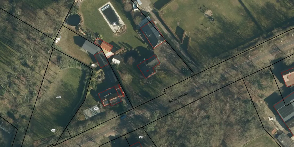 Het perceel waarop Schijfsebaan 6-A staat heeft een oppervlakte van 3800 m². Dit is een zeer groot perceel. De perceeloppervlakte wordt geregistreerd door het Kadaster. Gedetailleerde informatie over de maten van dit perceel kunt u vinden in het rapport Kadastrale kaart met maatvoering van Schijfsebaan 6-A.