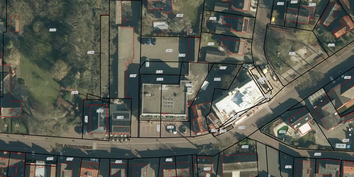 Het perceel waarop Sint Antoniusstraat 38-M staat heeft een oppervlakte van 556 m². Dit is een groot perceel. De perceeloppervlakte wordt geregistreerd door het Kadaster. Gedetailleerde informatie over de maten van dit perceel kunt u vinden in het rapport Kadastrale kaart met maatvoering van Sint Antoniusstraat 38-M.