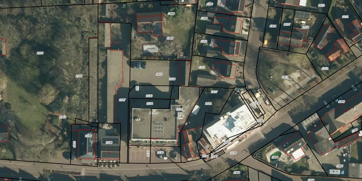 Het perceel waarop Sint Antoniusstraat 38-P staat heeft een oppervlakte van 556 m². Dit is een groot perceel. De perceeloppervlakte wordt geregistreerd door het Kadaster. Gedetailleerde informatie over de maten van dit perceel kunt u vinden in het rapport Kadastrale kaart met maatvoering van Sint Antoniusstraat 38-P.