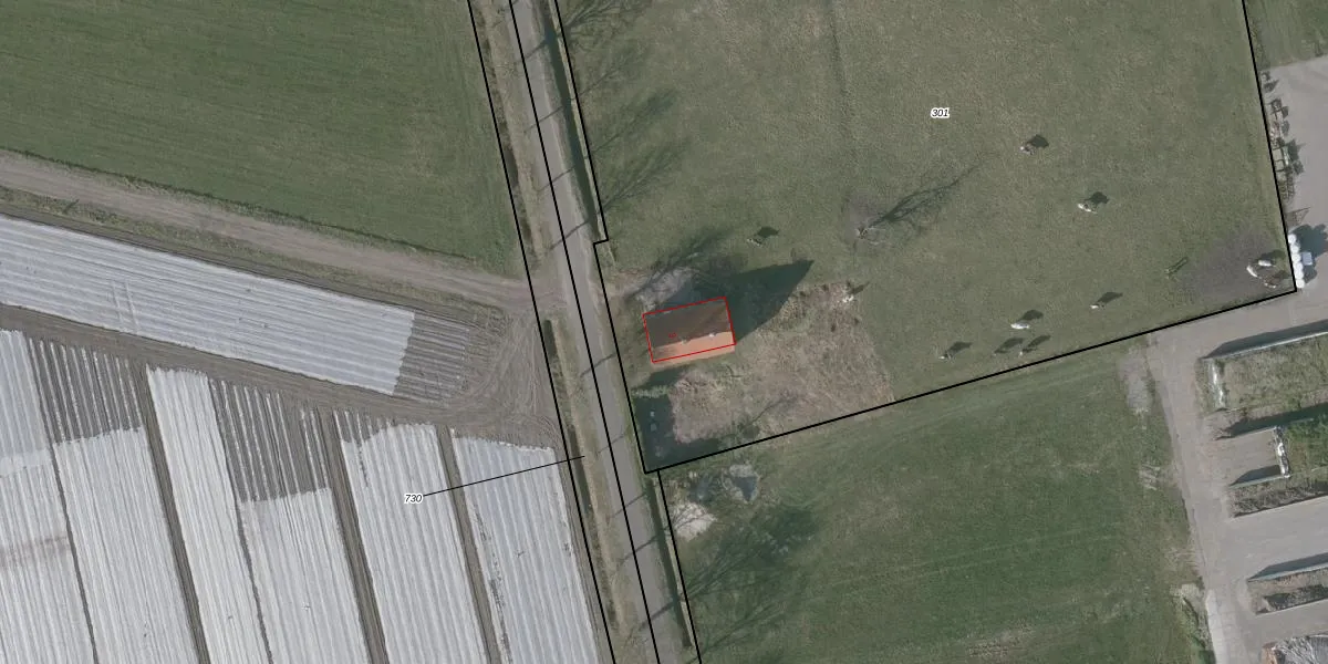 Het adres is gelegen op perceel 301 in de sectie O en de kadastrale gemeente Rucphen. De kadastrale aanduiding is aldus RPN00-O-301. De oppervlakte van het perceel is 7497 m². Dat is groter dan gemiddeld in Rucphen, waar de gemiddelde perceeloppervlakte op 4095,22 m² ligt. De grootste perceeloppervlakte in de kadastrale gemeente is 43,3 ha. De kleinste oppervlakte bedraagt 0 m². Op het perceel bevinden zich geen andere adressen. De huidige grenzen van het perceel zijn digitaal in de Basisregistratie Kadaster (BRK) geregistreerd op 20-08-2009.