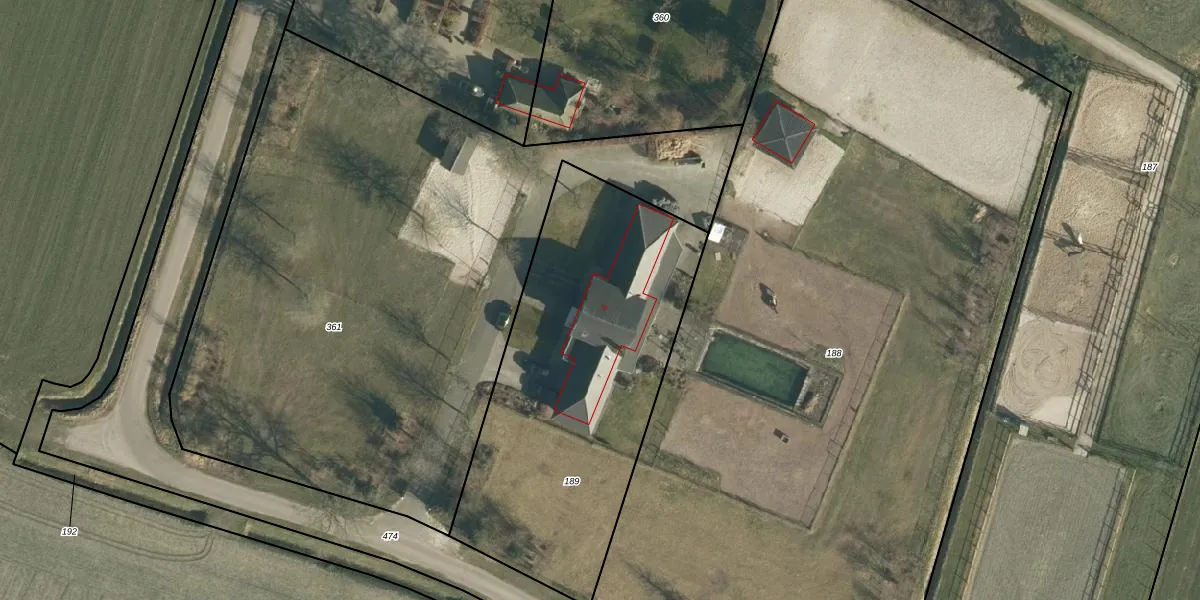 Het adres ligt op het perceel RPN00-R-189, dat zich in de kadastrale gemeente Rucphen bevindt. De gemiddelde perceelgrootte in Rucphen is 4095,22 m². Dit perceel is kleiner: de perceeloppervlakte bedraagt 1725 m². Het kleinste perceel in de kadastrale gemeente is 0 m² groot. De grootste perceeloppervlakte is 43,3 ha. Dit is het enige adres dat aanwezig is op het perceel. De huidige grenzen van het perceel zijn digitaal in de Basisregistratie Kadaster (BRK) geregistreerd op 16-09-2009.