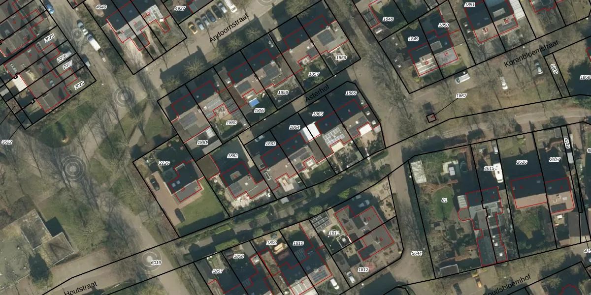 Gebruik de zoekbalk of klik op een perceel voor informatie over de adressen binnen dit perceel.