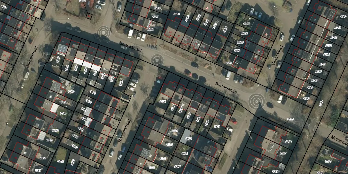 Bartokstraat 13 is gelegen op kadastraal perceel SDL00G3105. Deze kadastrale aanduiding is uniek en wordt gebruikt door het Kadaster om eigendomsrechten en andere zakelijke rechten vast te leggen. Het perceel maakt onderdeel uit van de kadastrale gemeente Schijndel.