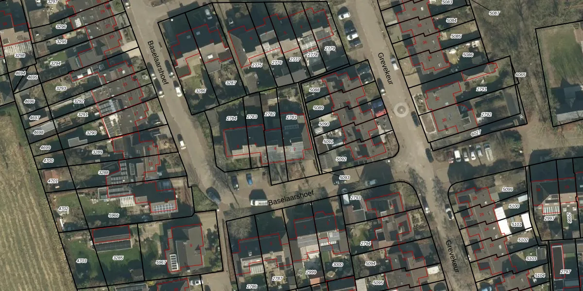 Het perceel waarop Baselaarshoef 2 staat heeft een oppervlakte van 304 m². Dit is een groot perceel. De perceeloppervlakte wordt geregistreerd door het Kadaster. Gedetailleerde informatie over de maten van dit perceel kunt u vinden in het rapport Kadastrale kaart met maatvoering van Baselaarshoef 2.