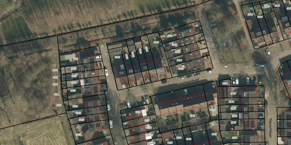 Gebruik de zoekbalk of klik op een perceel voor informatie over de adressen binnen dit perceel.