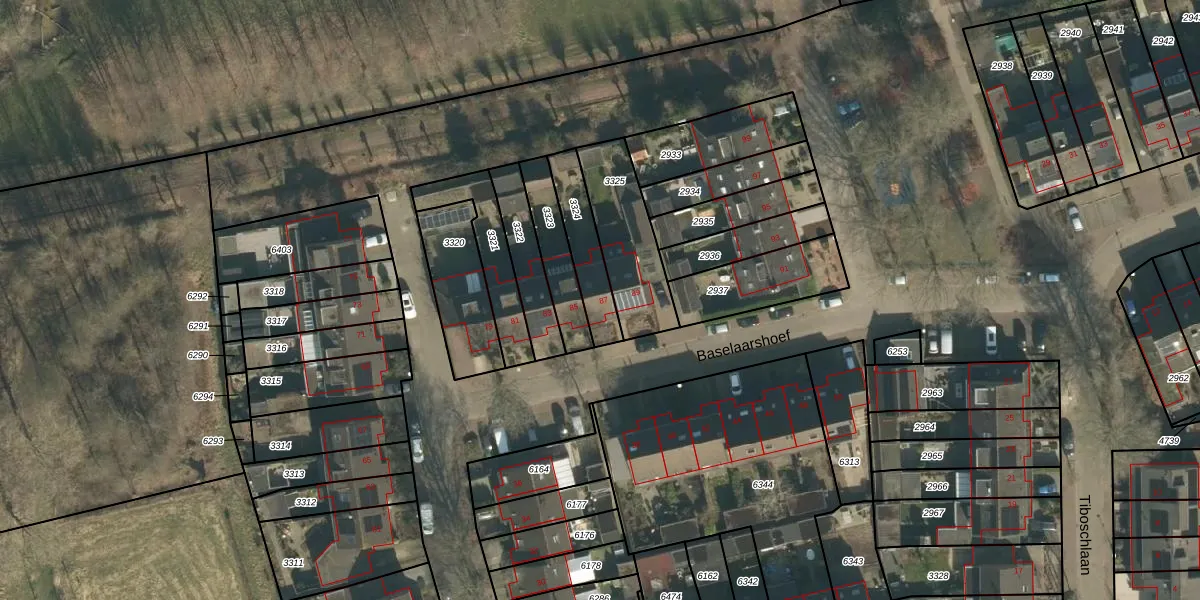 Het perceel waarop Baselaarshoef 87 staat heeft een oppervlakte van 163 m². Dit is een middelgroot perceel. De perceeloppervlakte wordt geregistreerd door het Kadaster. Gedetailleerde informatie over de maten van dit perceel kunt u vinden in het rapport Kadastrale kaart met maatvoering van Baselaarshoef 87.