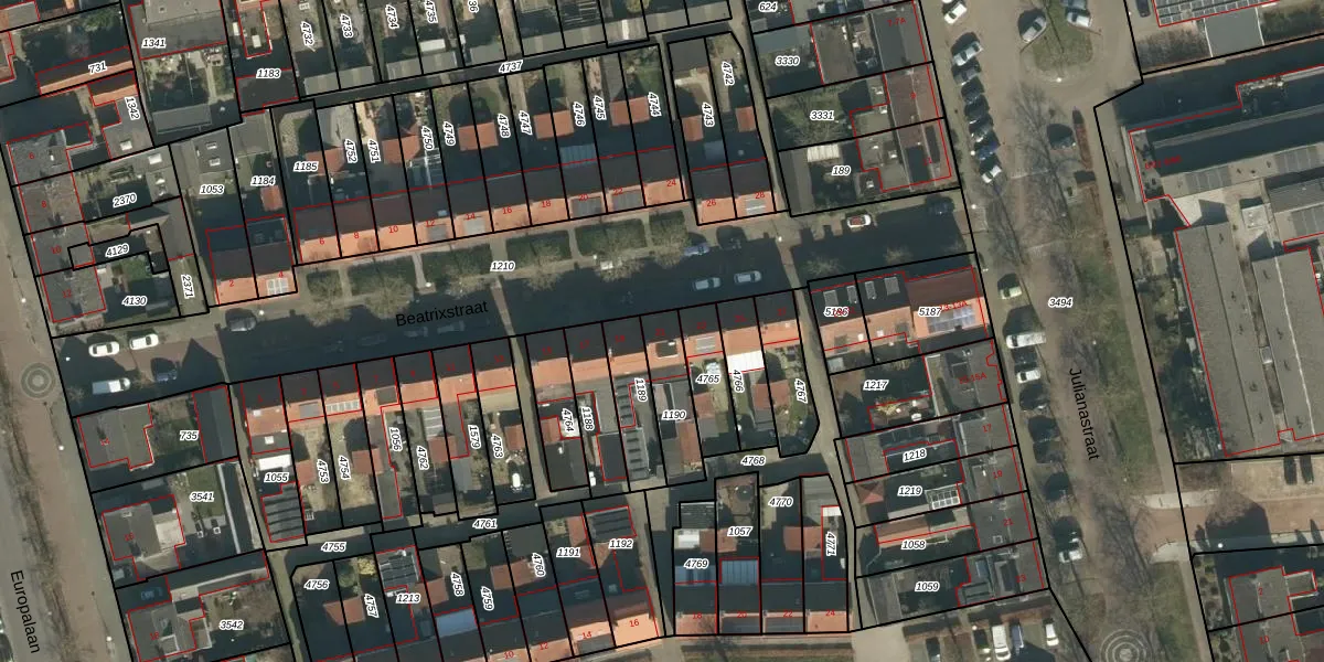 Het perceel waarop Beatrixstraat 21 staat heeft een oppervlakte van 155 m². Dit is een middelgroot perceel. De perceeloppervlakte wordt geregistreerd door het Kadaster. Gedetailleerde informatie over de maten van dit perceel kunt u vinden in het rapport Kadastrale kaart met maatvoering van Beatrixstraat 21.