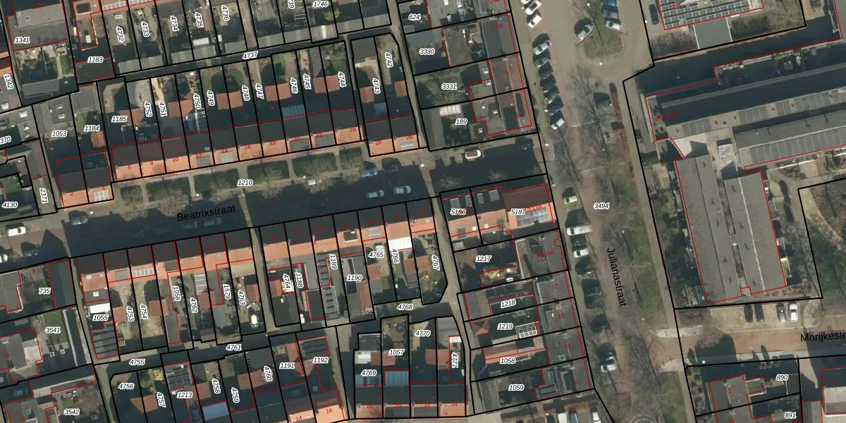 Beatrixstraat 27 is gelegen op kadastraal perceel SDL00G4767. Deze kadastrale aanduiding is uniek en wordt gebruikt door het Kadaster om eigendomsrechten en andere zakelijke rechten vast te leggen. Het perceel maakt onderdeel uit van de kadastrale gemeente Schijndel.