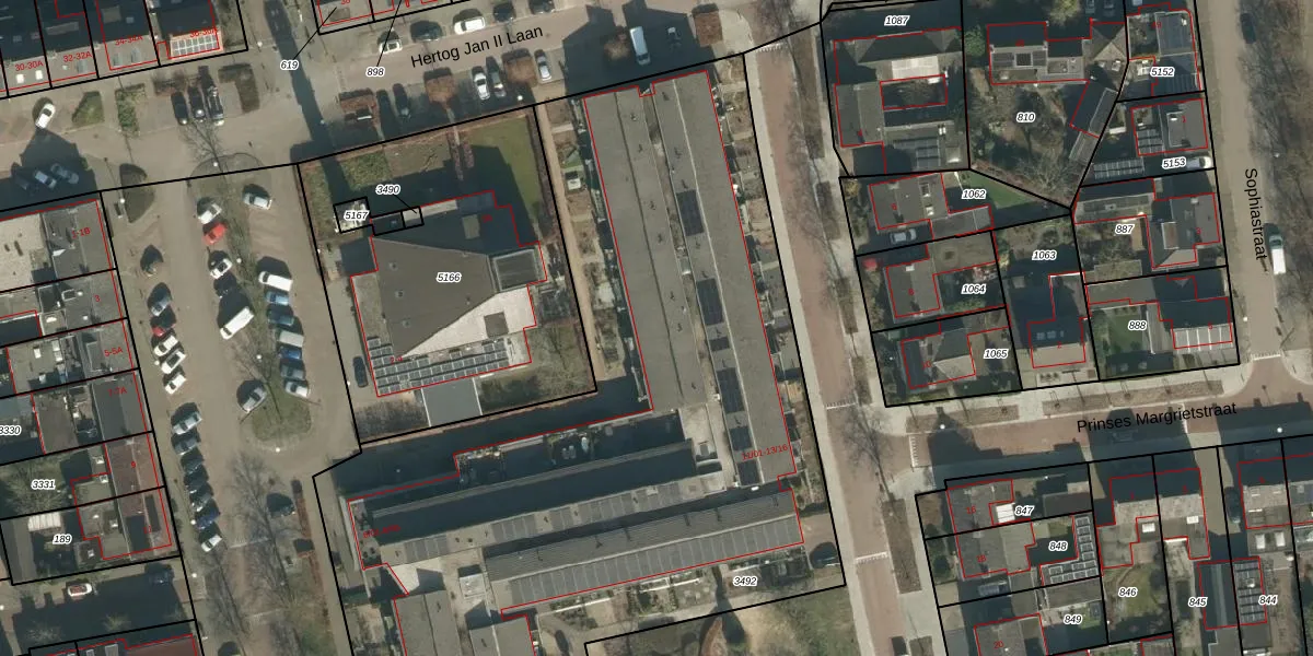 Het perceel waarop Bernhardstraat 11-13 staat heeft een oppervlakte van 5072 m². Dit is een zeer groot perceel. De perceeloppervlakte wordt geregistreerd door het Kadaster. Gedetailleerde informatie over de maten van dit perceel kunt u vinden in het rapport Kadastrale kaart met maatvoering van Bernhardstraat 11-13.