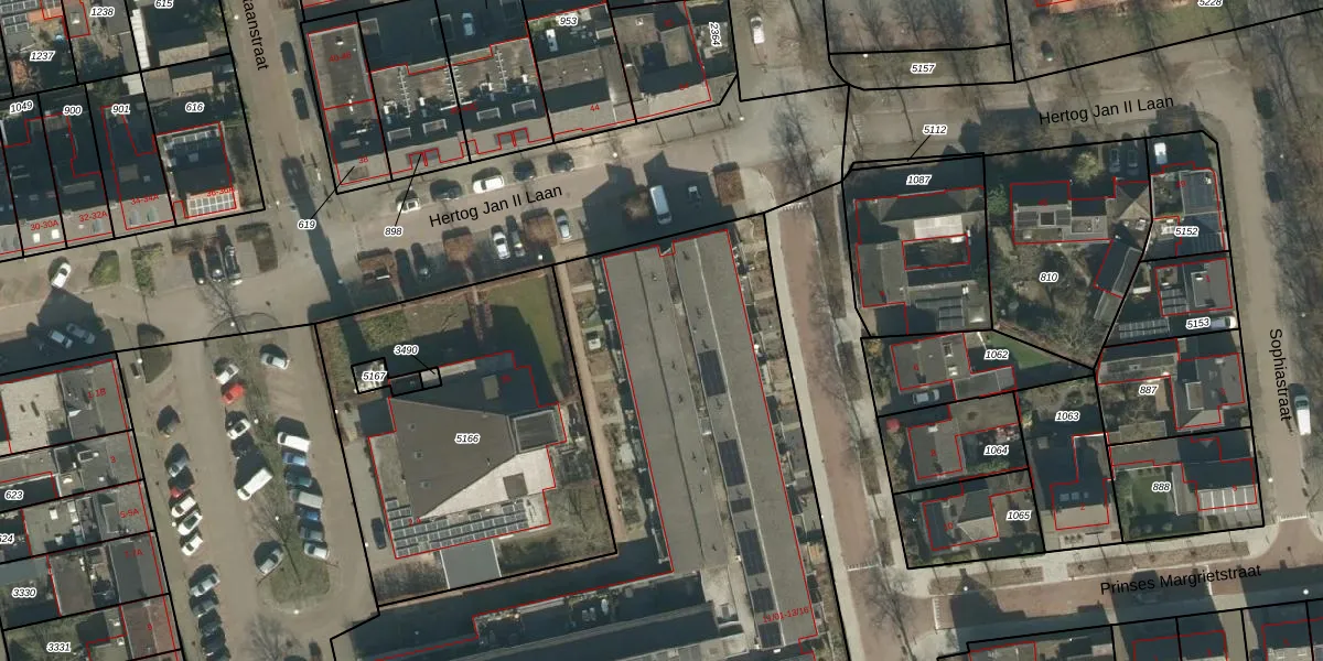 Het adres ligt op het perceel SDL00-G-3492, dat zich in de kadastrale gemeente Schijndel bevindt. Het perceel is met 5072 m² relatief groot. Het gemiddelde ligt in de kadastrale gemeente Schijndel op 2927,47 m². Het kleinste perceel in de kadastrale gemeente is 0 m² groot. De grootste perceeloppervlakte is 41,5 ha. Er zijn 66 adressen aanwezig op het perceel. In de Basisregistratie Kadaster (BRK) werden de grenzen van het perceel geregistreerd op 19-08-2008.